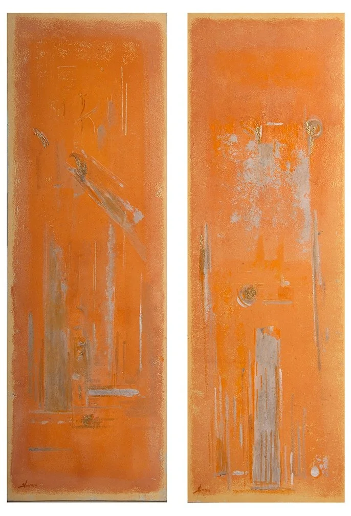 Acrilic, terre, gold leaf on canvass cm. 30x91 (x2)