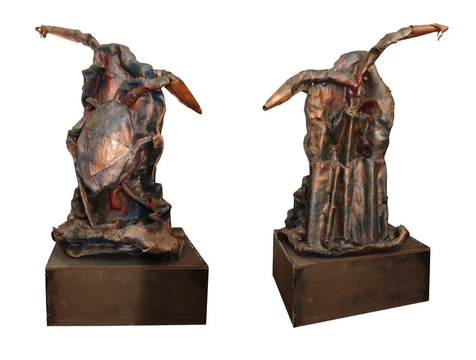 Vetroresina, ferro, spray paint, elementi movibili in rame